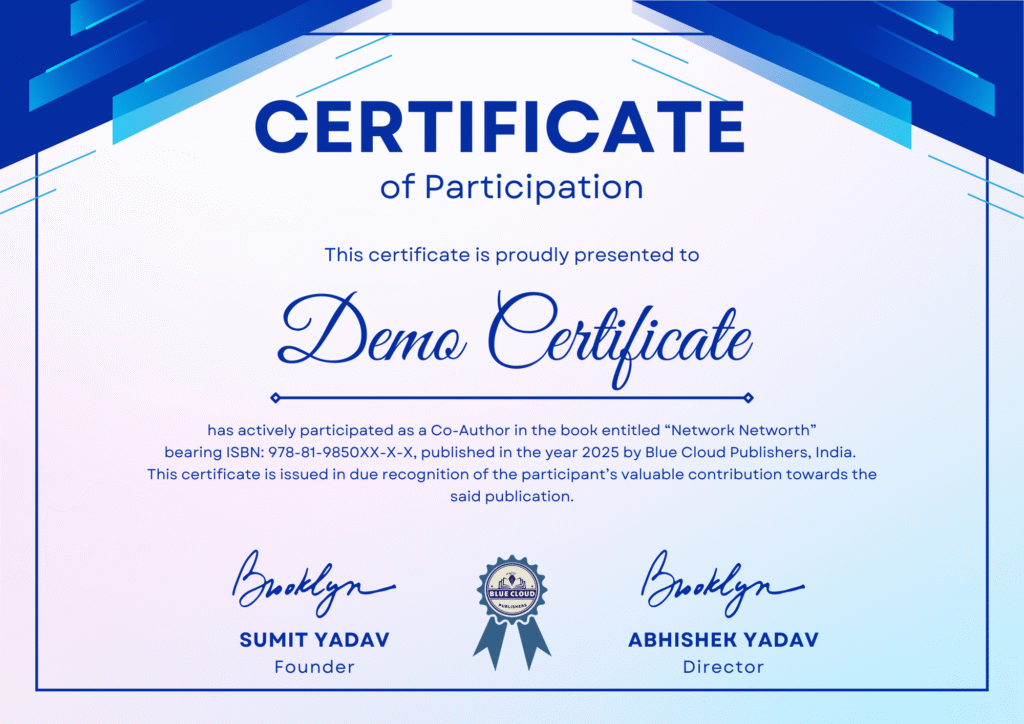Network is Networth is a groundbreaking World Record Anthology published by Blue Cloud Publishers, bringing together visionary authors from across India. This powerful collection is more than just a book—it’s a movement that celebrates the strength of collaboration, the art of networking, and the limitless potential of human connection.